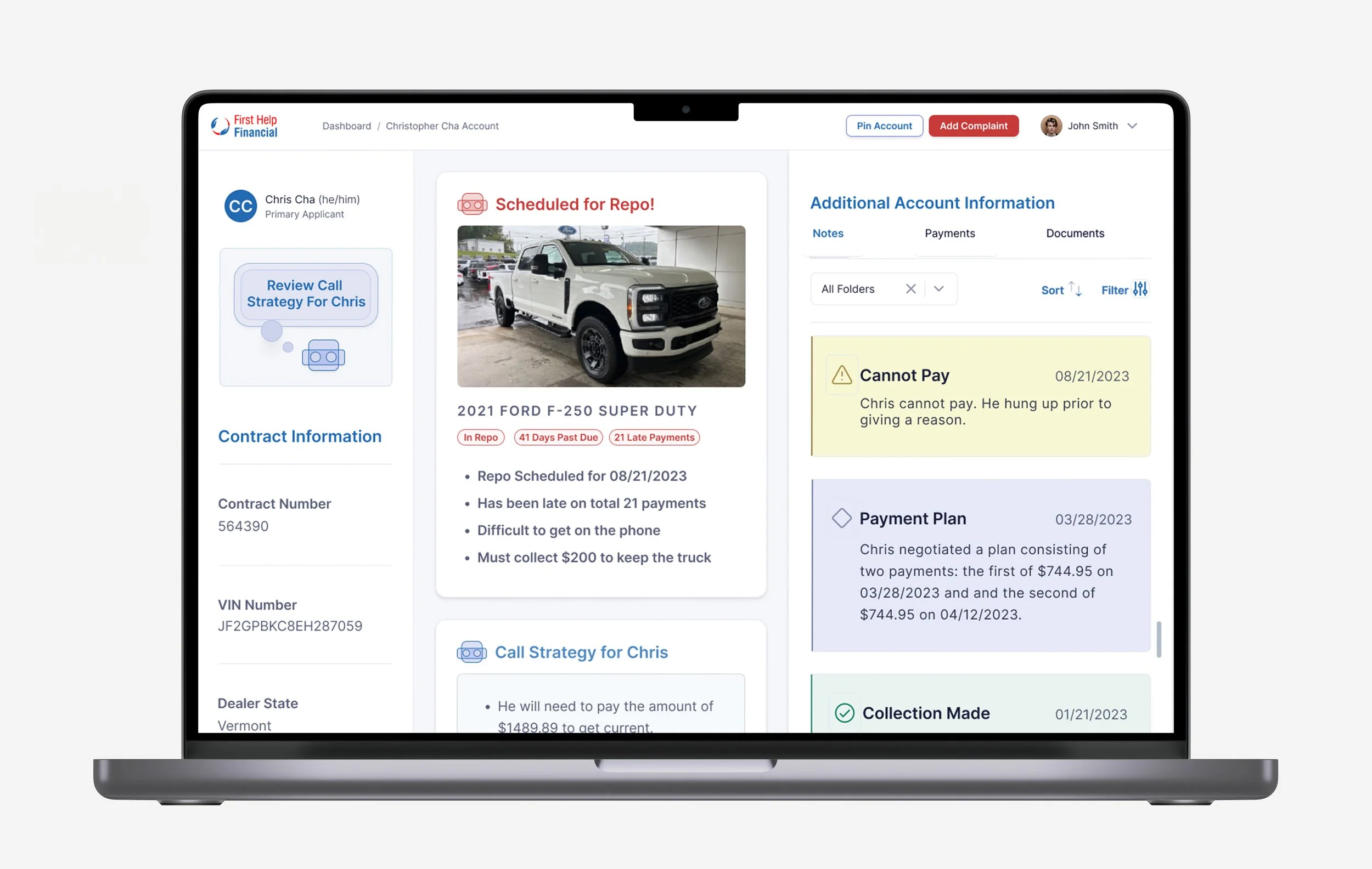First Help Financial's Collections faced challenges from expansion, outdated tools, high turnover, and errors. Targeted UX research and AI redesign restored efficiency and secured future success.