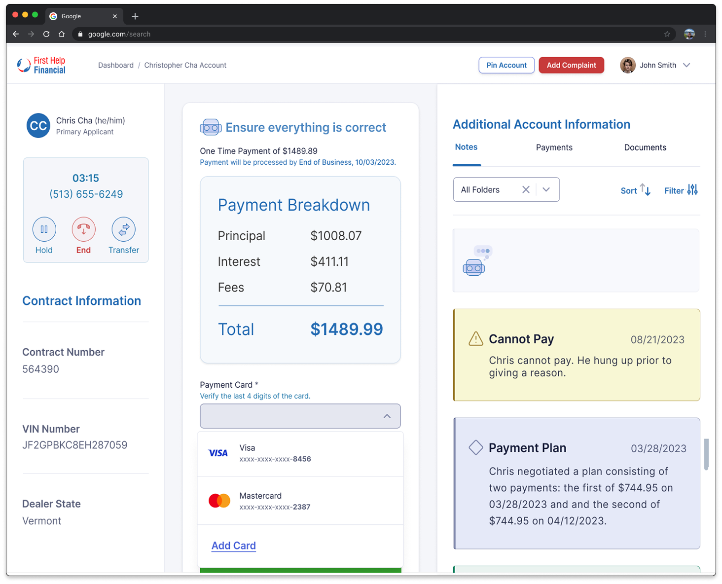 AI Transformed First Help's Collections Team. First Help Financial's rapid growth strained its Collections department with legacy systems, high turnover, and negotiation errors. Targeted UX research and AI redesign improved efficiency and stability. One-fifth of agents missed bonus targets due to performance issues, and system failures hampered IT and workflows.